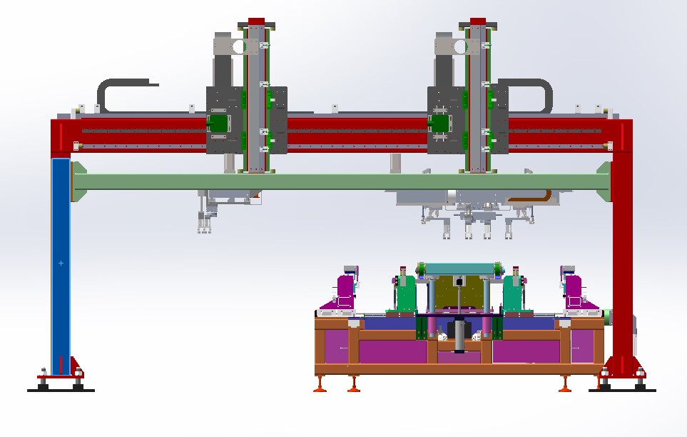 本生產(chǎn)線依據(jù)用戶需求,進(jìn)行“量身”設(shè)計(jì),由層壓前鋪設(shè)傳輸線;通過(guò)不同機(jī)構(gòu)的傳輸、轉(zhuǎn)運(yùn)、變向、定位、旋轉(zhuǎn)/釋放實(shí)現(xiàn)組件封裝過(guò)程的流水化操作,可提高單位組件生產(chǎn)效率。